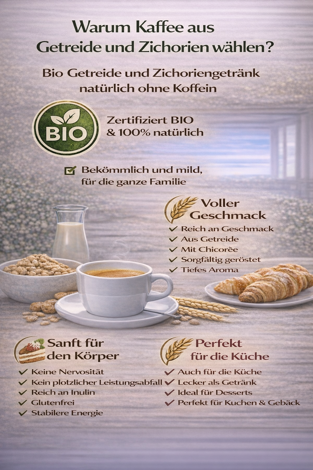 Der Genuss von Getreidekaffee – ganz ohne Druck, ohne Nervosität, ohne Extreme.